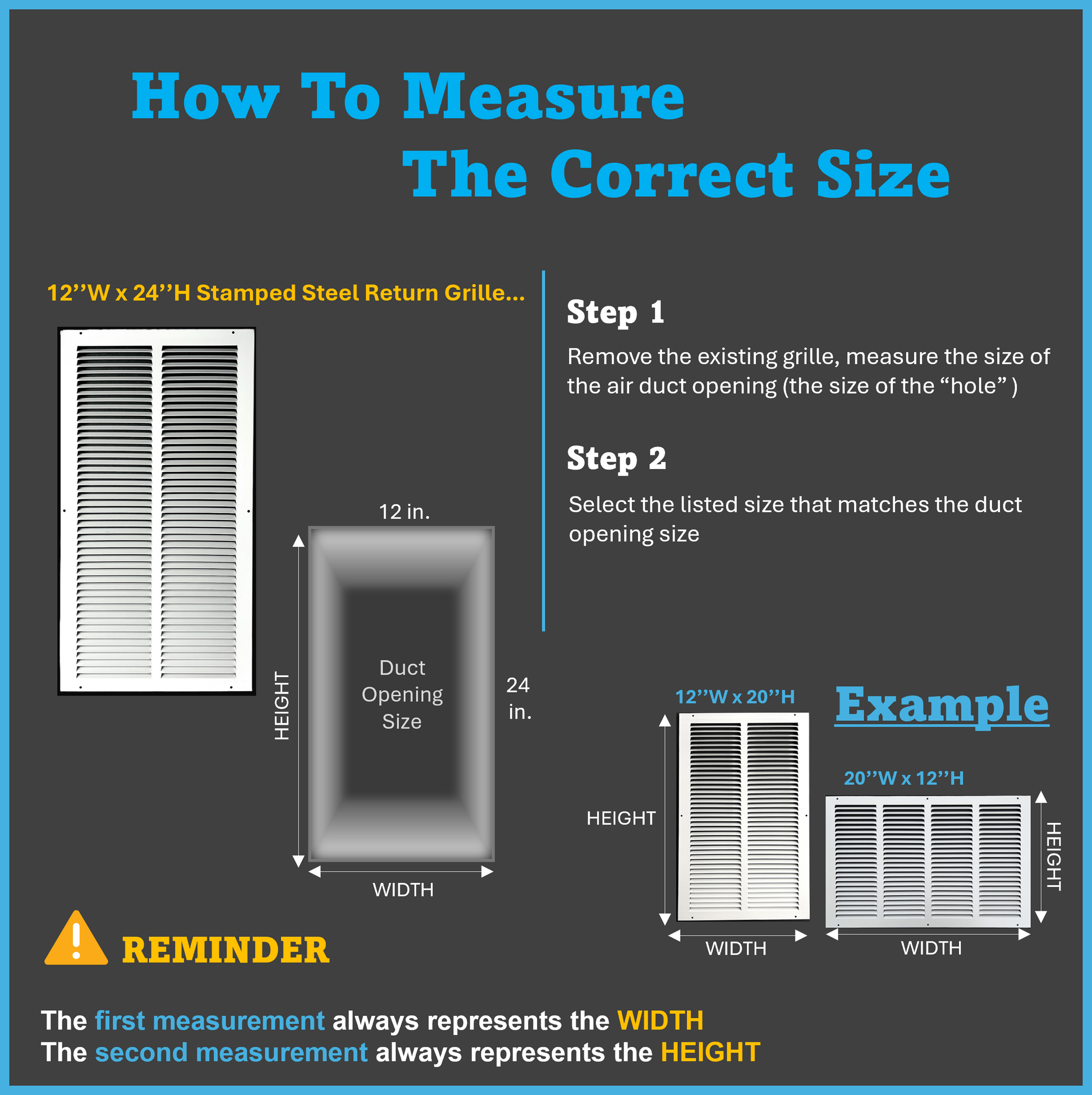 - The Listed size 12"x24" is for inside duct opening measurement, actual outside dimension is 13.75"x25.75"