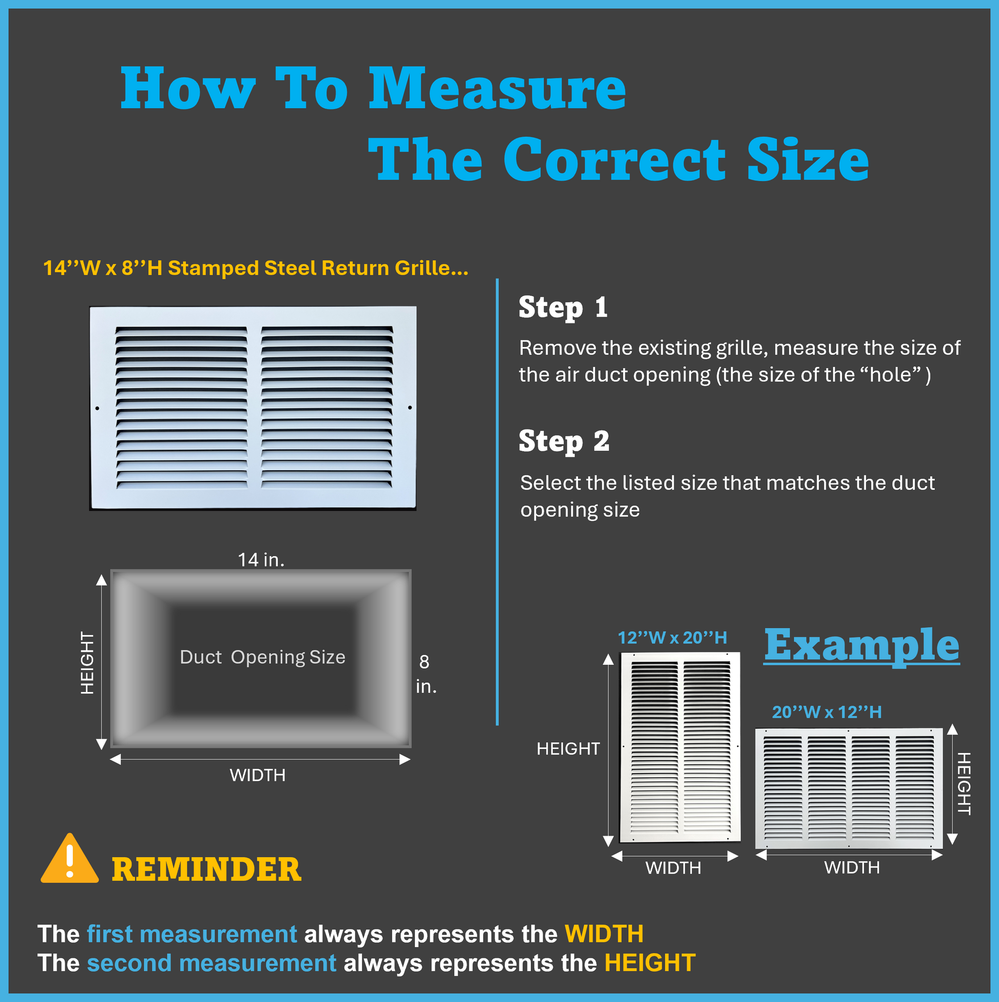 - The Listed size 14"x8" is for inside duct opening measurement, actual outside dimension is 15.75"x9.75"