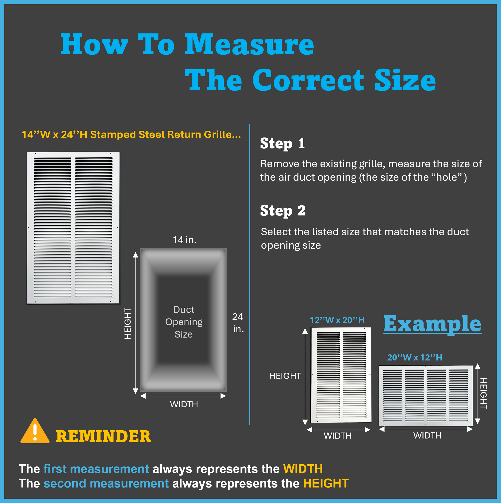 Fits 14x24 Duct Opening Stamped Steel Return Air Grille Vent Cover Grille for Sidewall and Ceiling in White Surface Dimensions: 15.75"W X 25.75"H (14" W x 24" H Duct Opening)