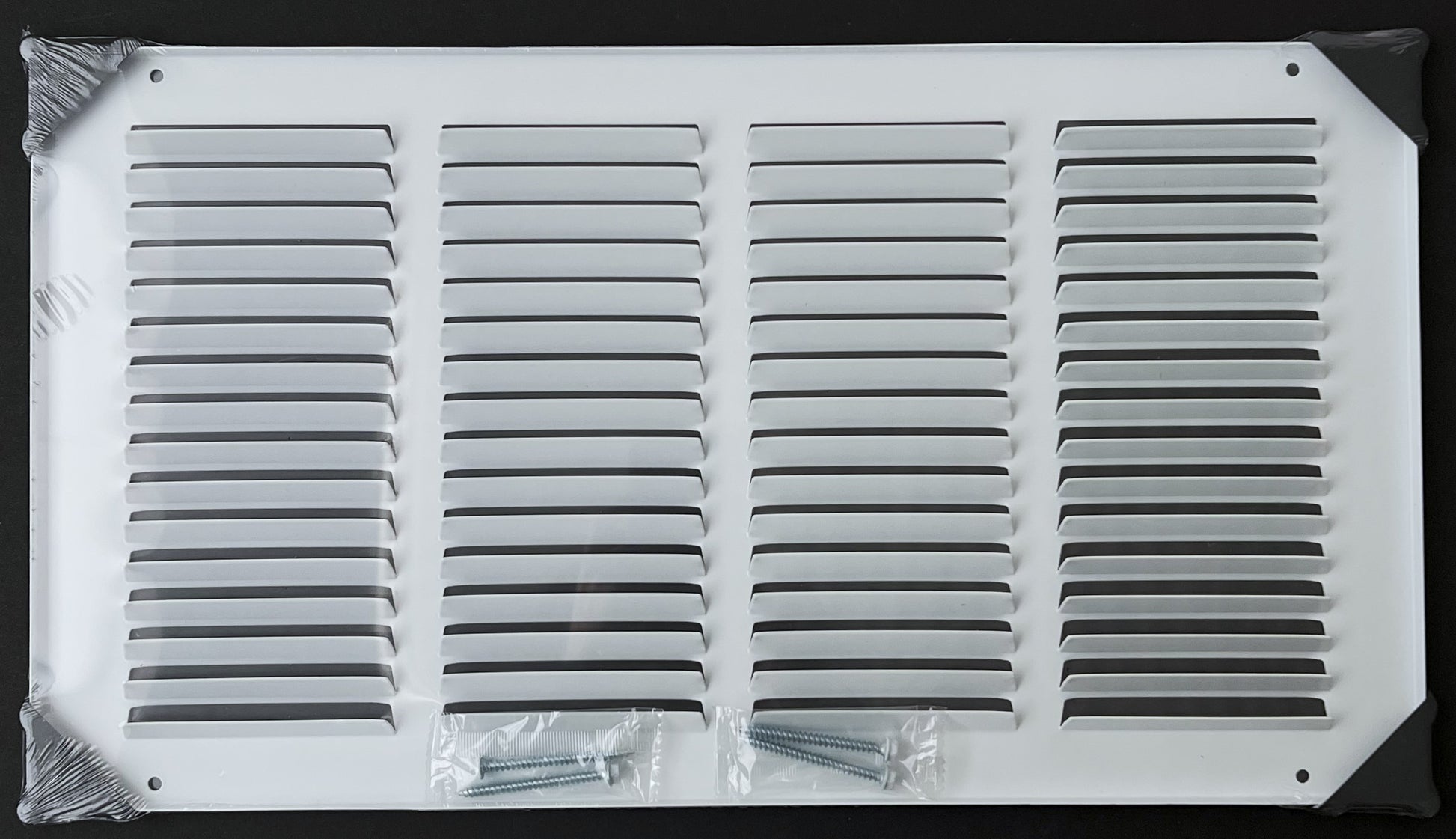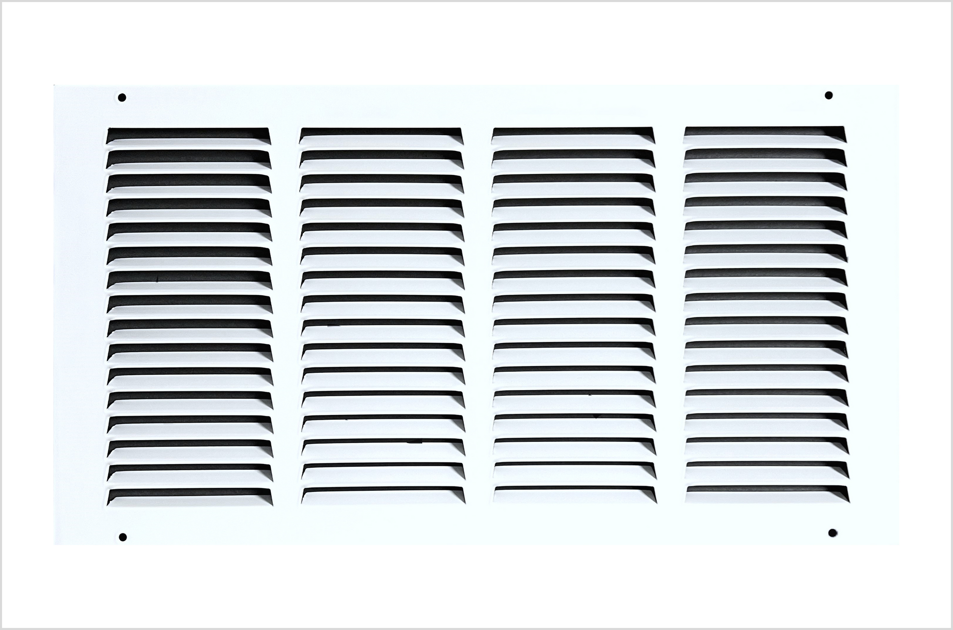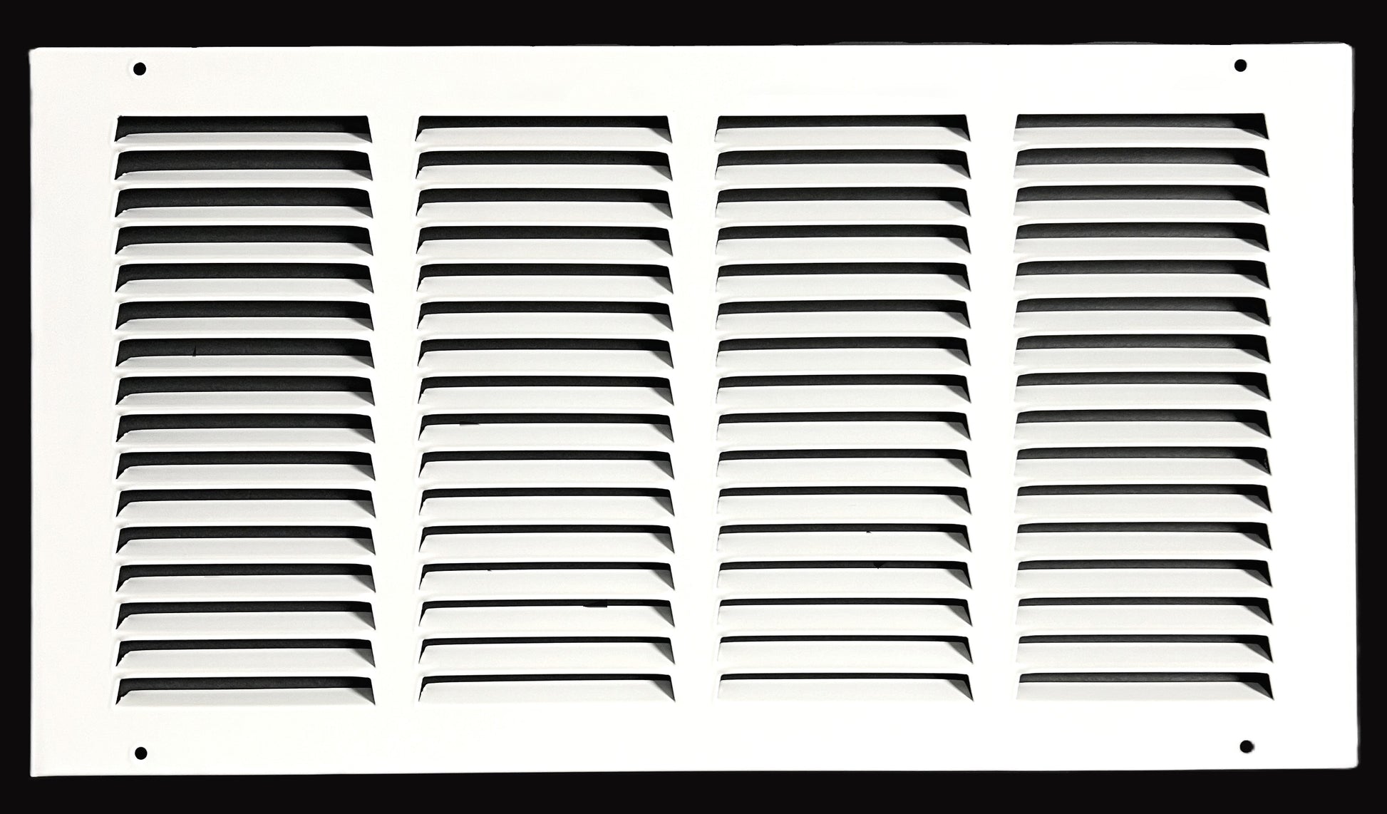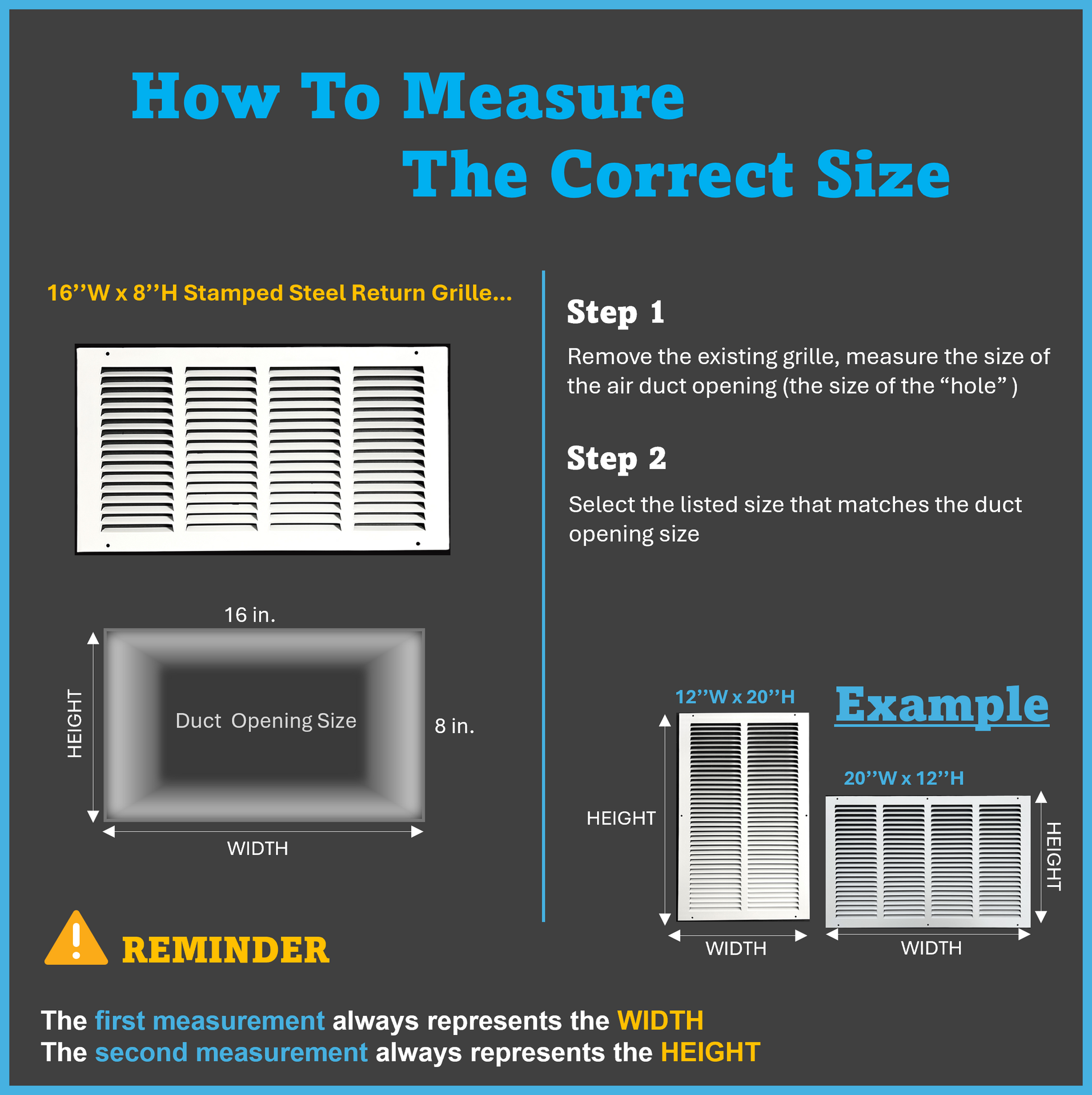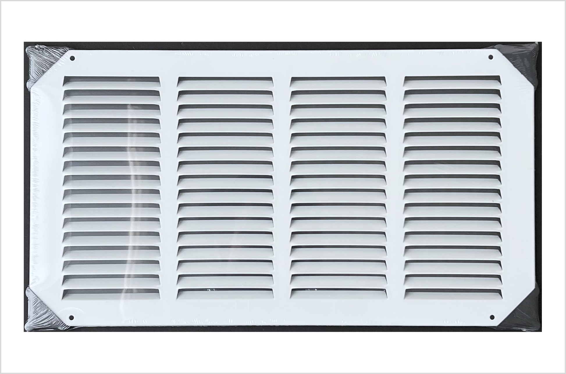 Fits 16x8 Duct Opening Stamped Steel Return Air Grille Vent Cover Grille for Sidewall and Ceiling in White Surface Dimensions: 17.75"W X 9.75"H (16" W x 8" H Duct Opening)