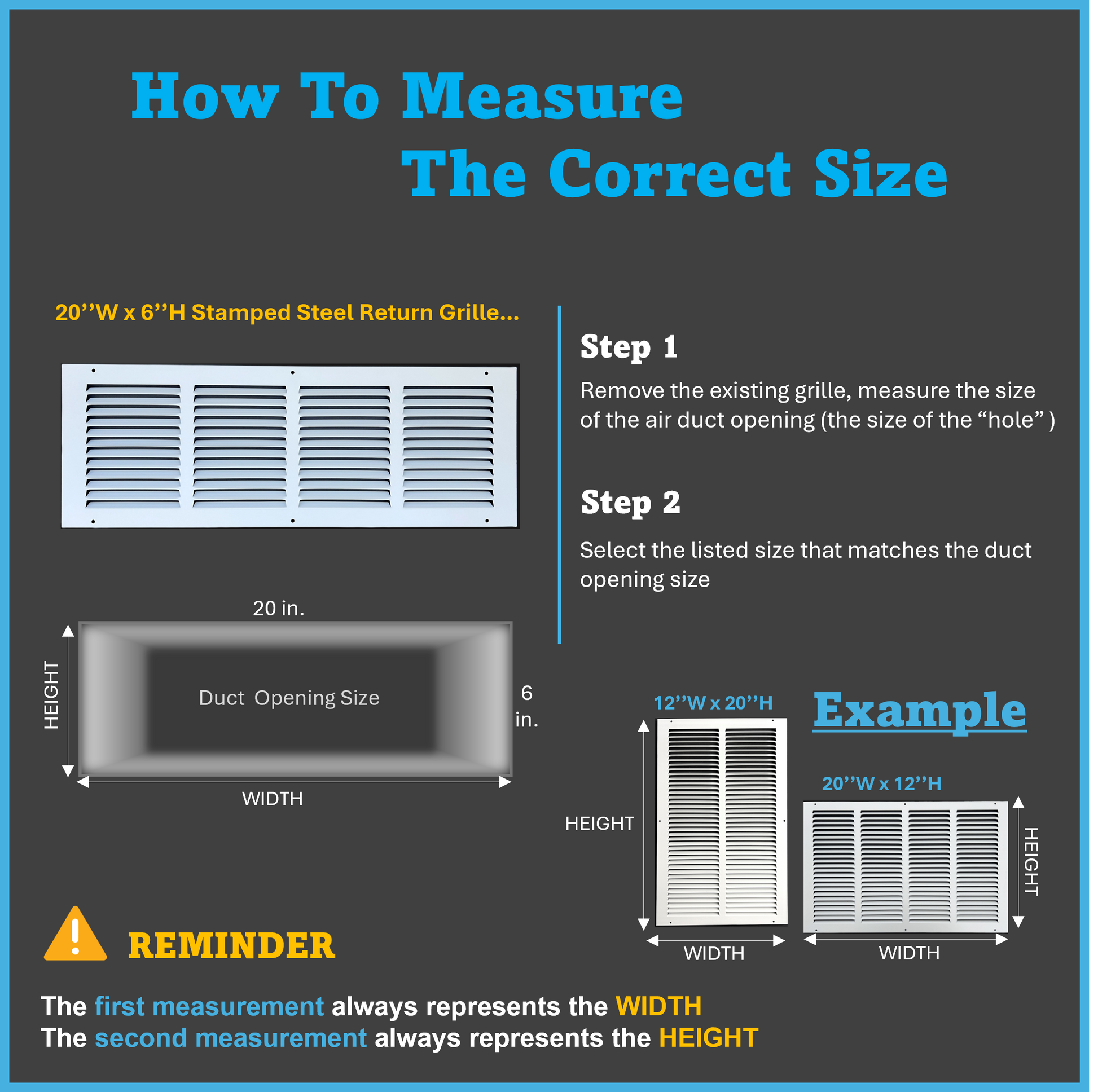 Fits 20x6 Duct Opening Stamped Steel Return Air Grille Vent Cover Grille for Sidewall and Ceiling in White Surface Dimensions: 21.75"W X 7.75"H (20" W x 6" H Duct Opening)