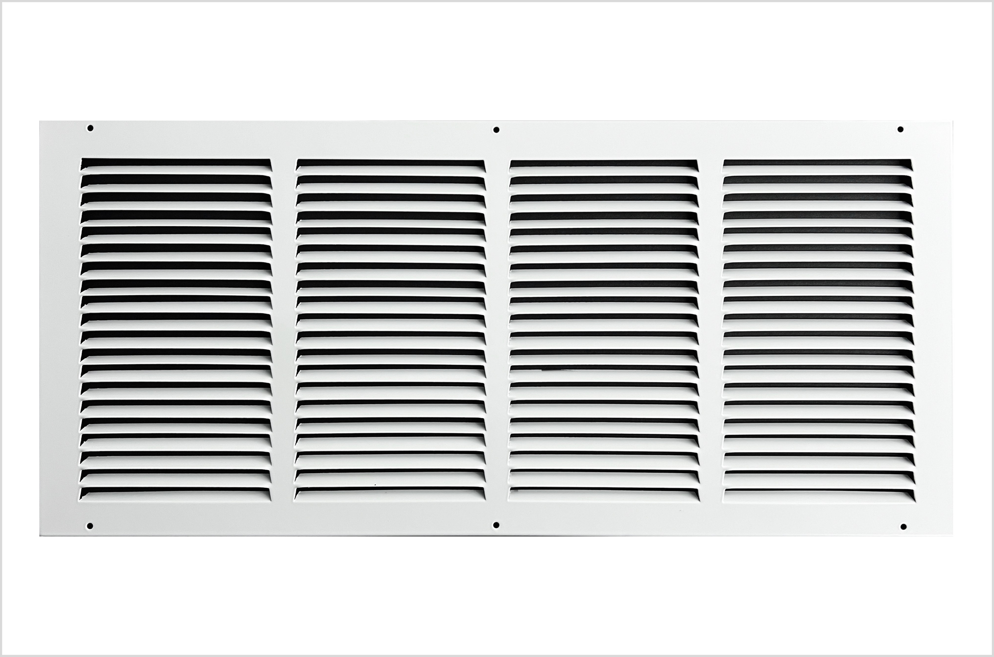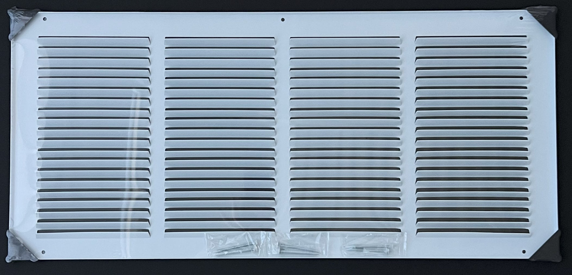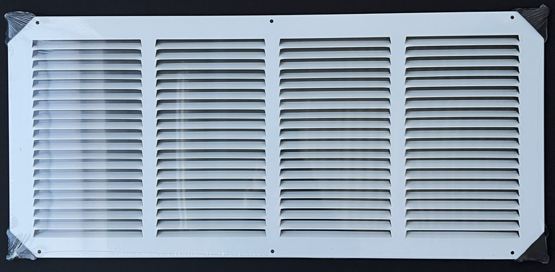 Fits 24x10 Duct Opening Stamped Steel Return Air Grille Vent Cover Grille for Sidewall and Ceiling in White Surface Dimensions: 25.75"W X 11.75"H (24" W x 10" H Duct Opening)