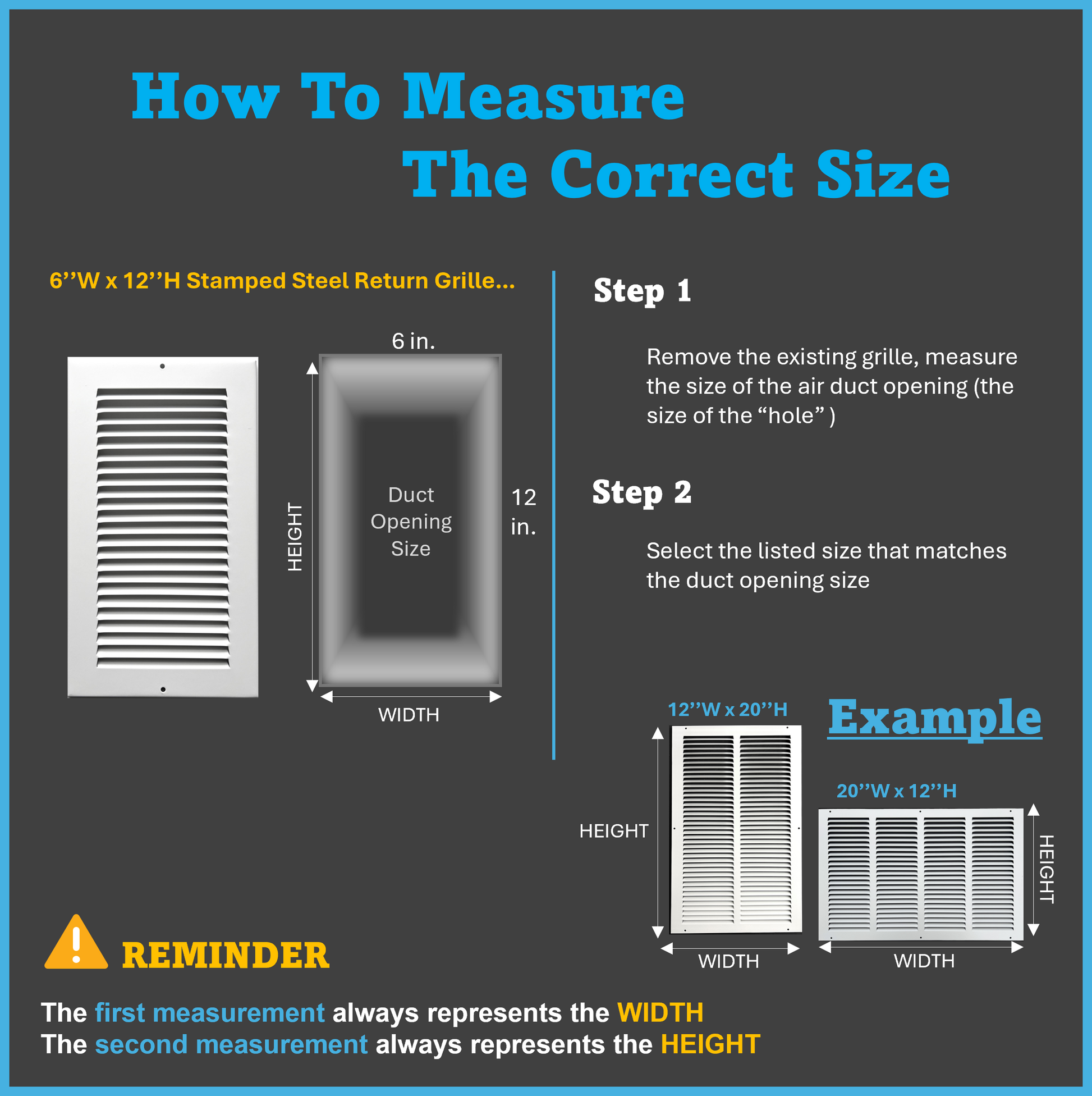 Fits 6x12 Duct Opening Stamped Steel Return Air Grille Vent Cover Grille for Sidewall and Ceiling in White Surface Dimensions: 7.75" W X 13.75" H (6" W x 12" H Duct Opening)