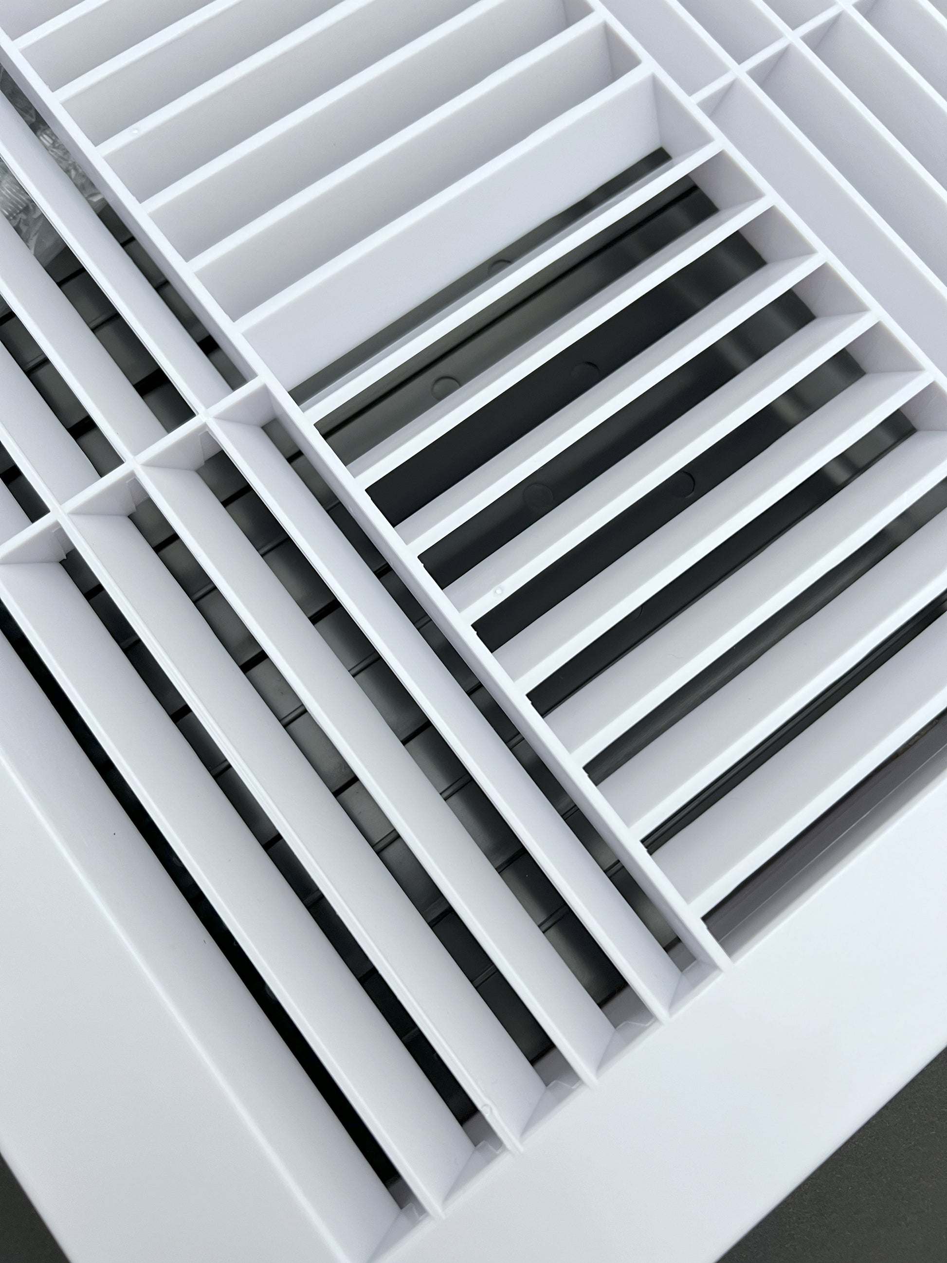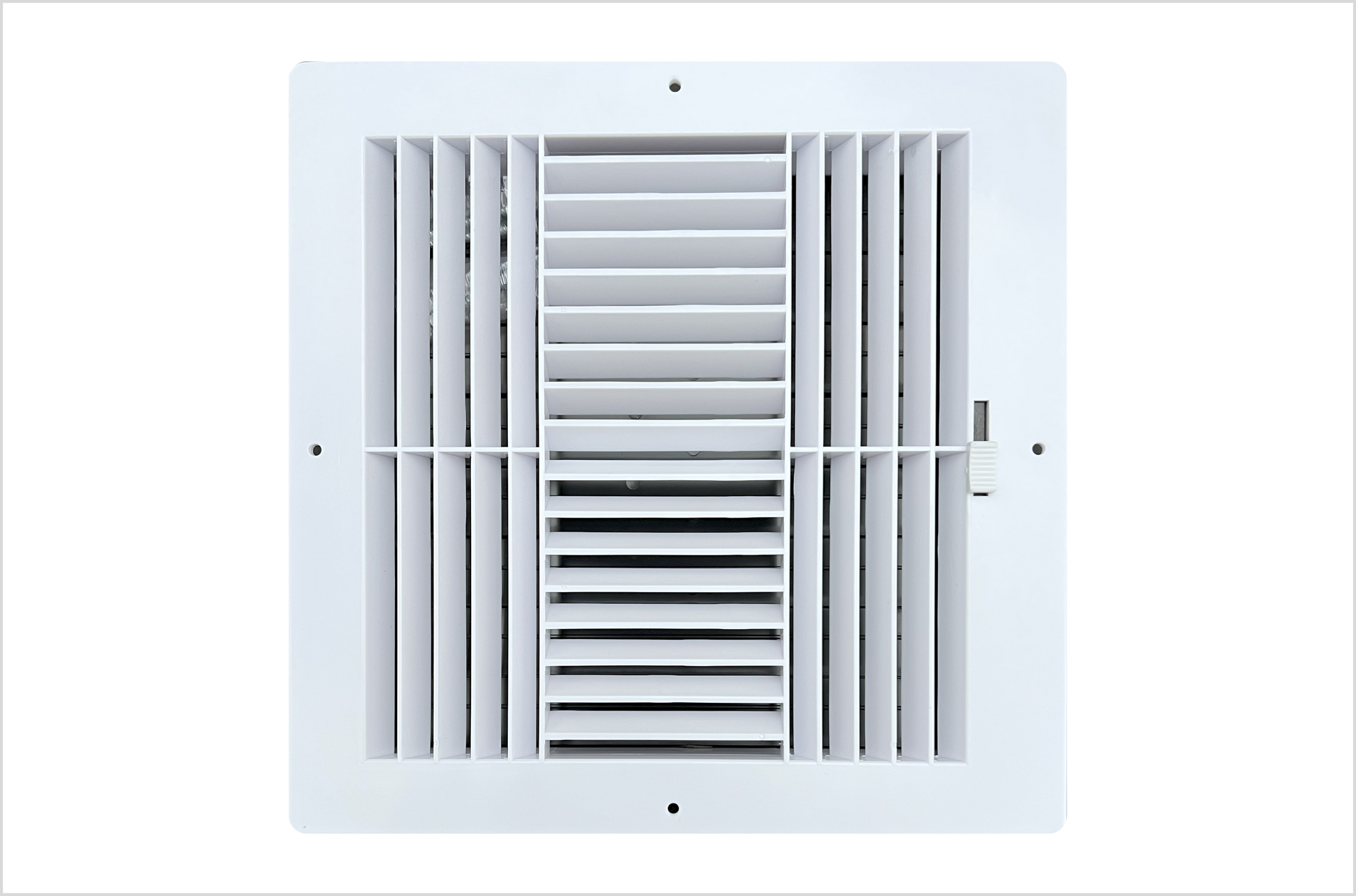 Four-Way Plastic Side Wall/Ceiling Register in White 10" w X 10" h for Duct Opening