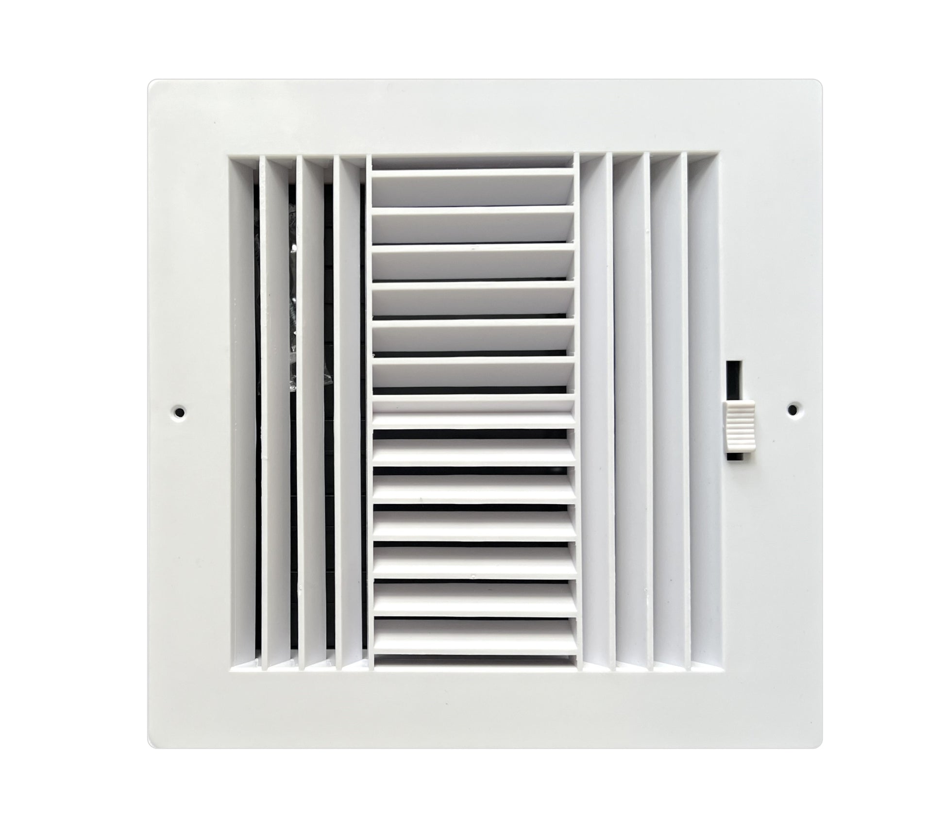 Four-Way Plastic Side Wall/Ceiling Register in White 8"w X 8"h for Duct Opening (Outside Dimension is 10"w X 10"h)