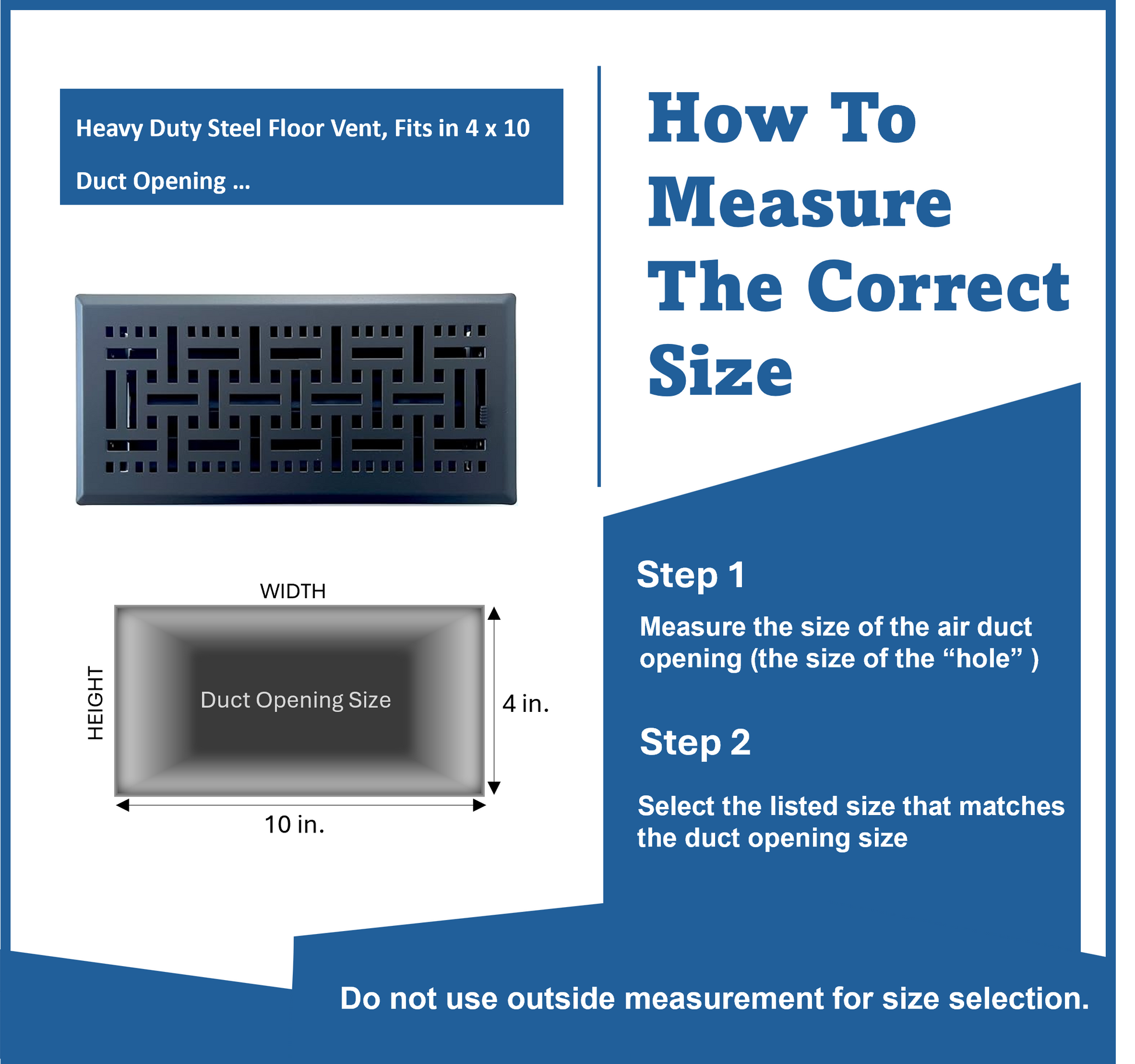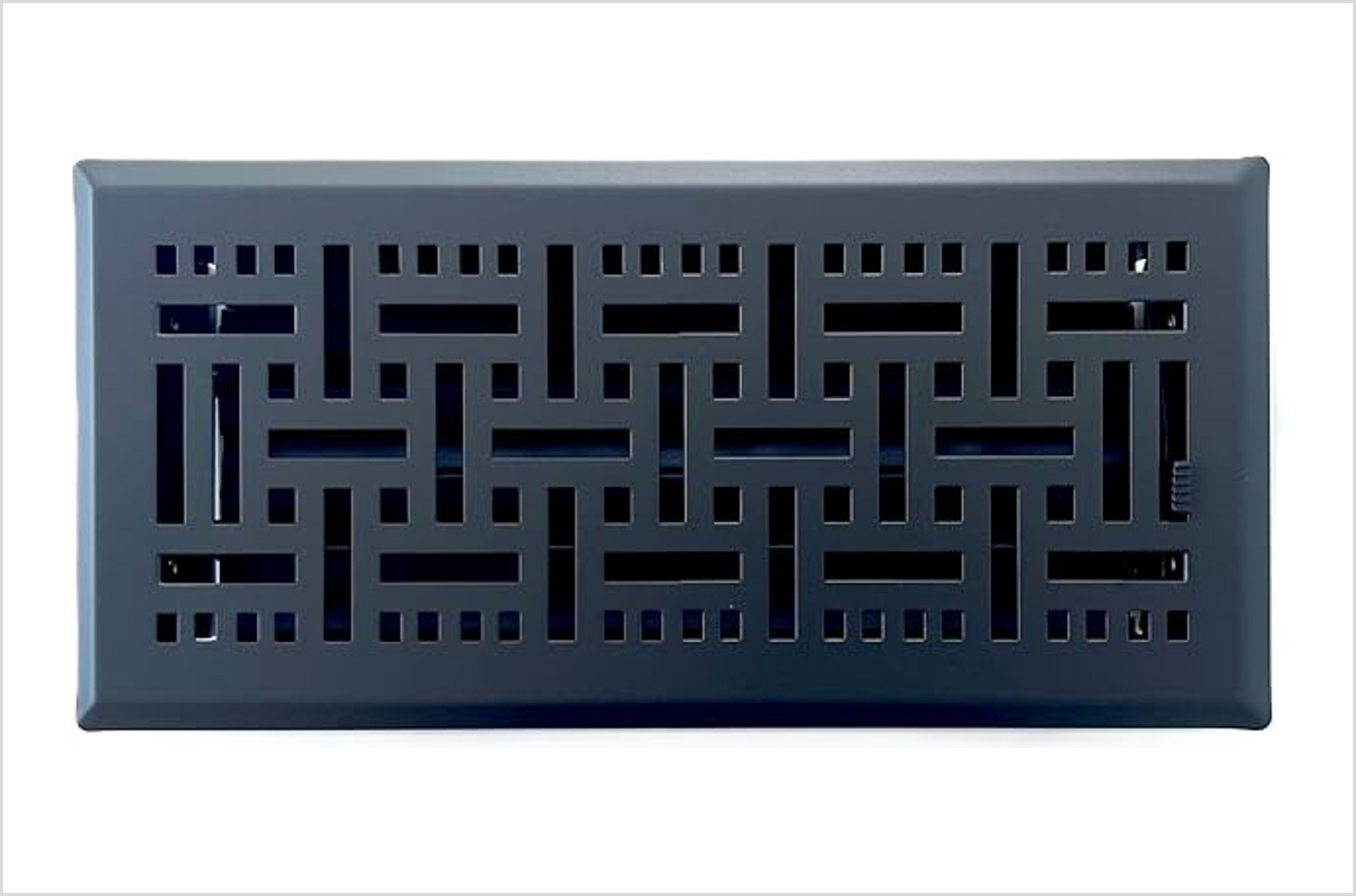 Heavy Duty Steel Floor Vent with Contemporary Design and Beautiful Black Matte Finish. Fits in 4 x 10 Duct Opening. Overall Dimension is 5.75 in Wide x 11.75 in Long.