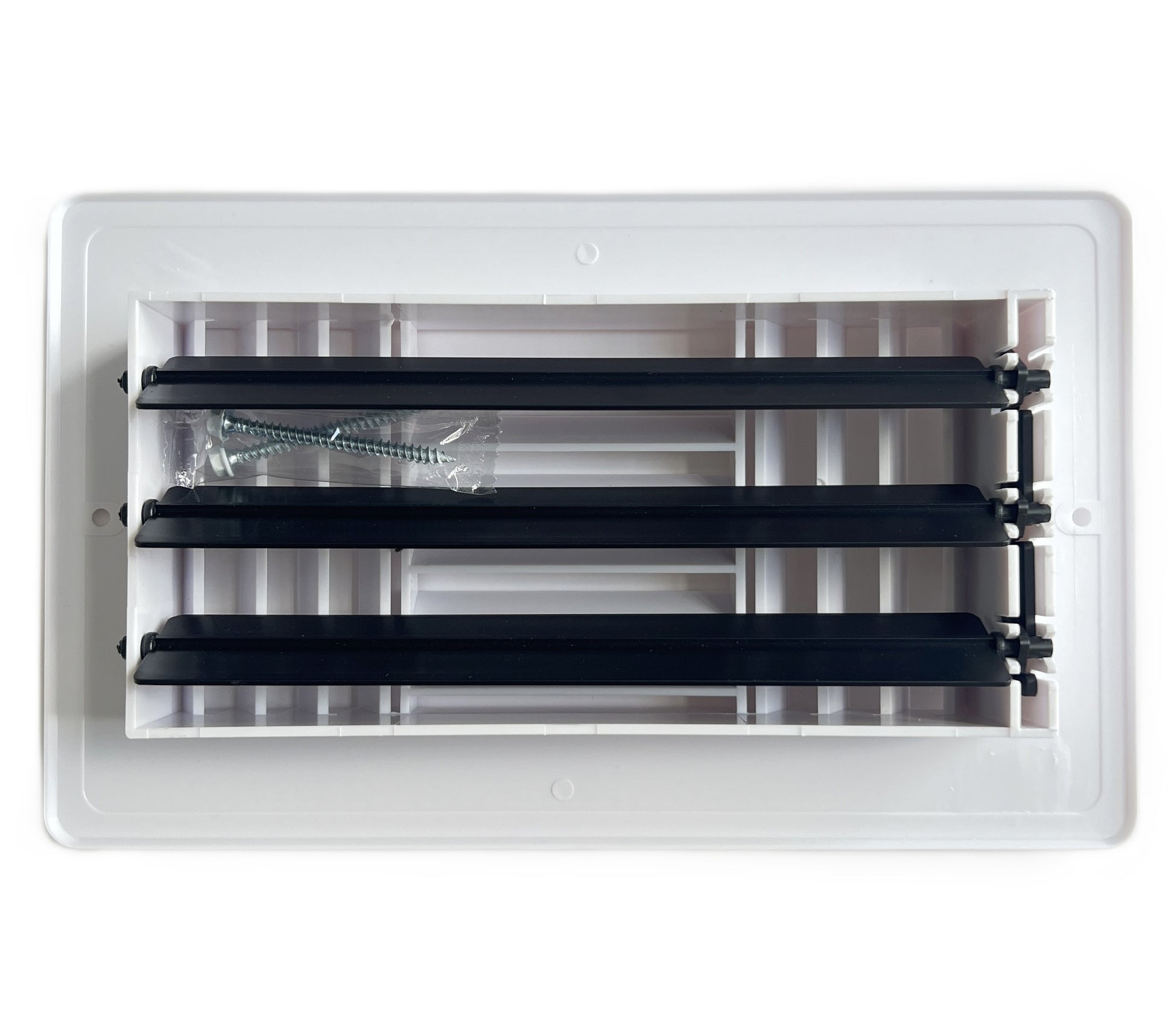 Three-Way Plastic Side Wall/Ceiling Register in White 8" w X 4" h for Duct Opening (Outside Dimension is 9.75" w X 6" h)