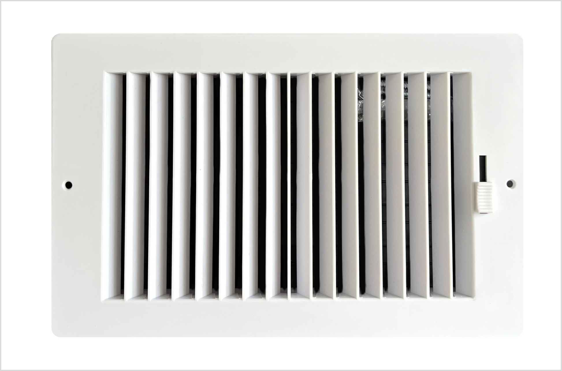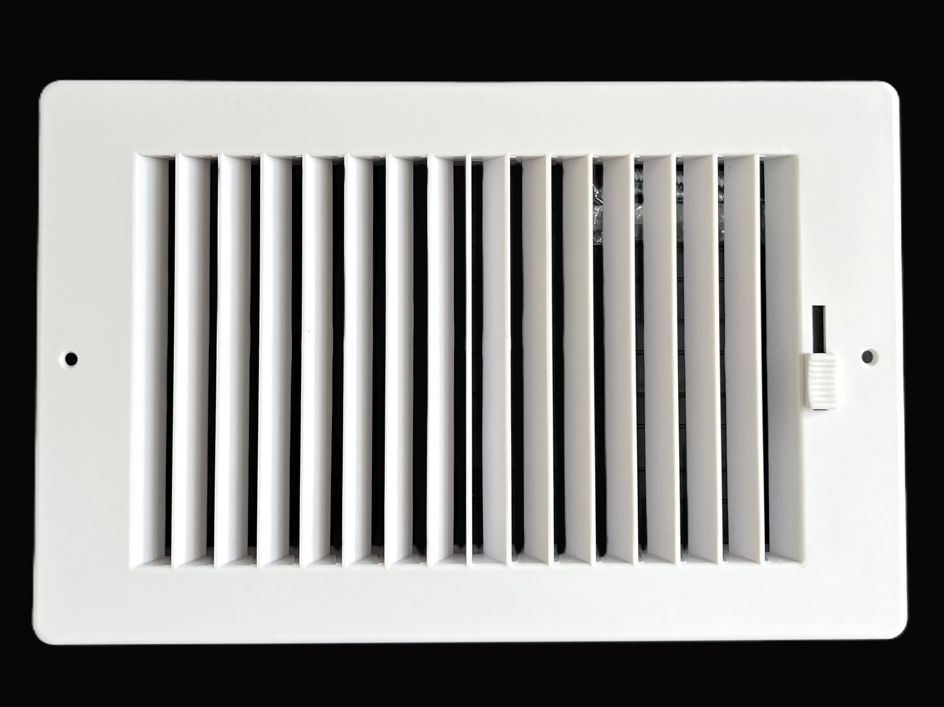 Two-way plastic side wall/ceiling register in white 10"w X 6"h for duct opening (outside dimension is 11.75"w X 7.75"h)