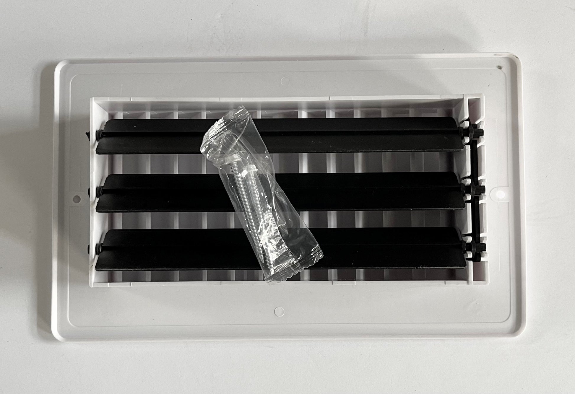Two-way plastic side wall/ceiling register in white 8"w X 4"h for duct opening